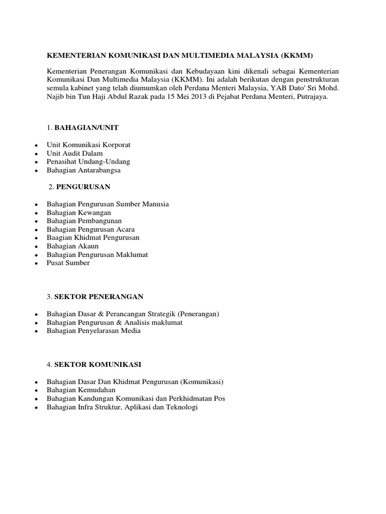 Jawatan kosong kementerian komunikasi dan multimedia 2020. Kementerian komunikasi dan multimedia ialah penjenamaan semula daripada kementerian penerangan, komunikasi dan kebudayaan malaysia (kpkk) berkuatkuasa pada 16 mei 2013, oleh bekas perdana menteri malaysia, dato' seri mohd najib bin abdul razak. Komunikasi dan multimedia malaysia (kkmm). See more of kementerian komunikasi dan multimedia malaysia, kkmm on facebook. Ini adalah berikutan dengan penstrukturan semula kabinet yang telah diumumkan oleh perdana menteri malaysia, yab dato' sri mohd.
