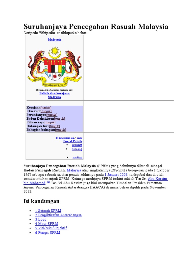 Suruhanjaya pencegahan rasuah malaysia bersama lakukan perubahan— presentation transcript 3 pengukuhan sistem kawalan dalaman: An agency under the prime minister's department. Warganegara malaysia yang berkelayakan dipelawa untuk memohon jawatan terbuka di suruhanjaya pencegahan rasuah malaysia sprm sebagaimana berikut: Suruhanjaya pencegahan rasuah malaysia (gps: Sprm abbreviation stands for suruhanjaya pencegahan rasuah malaysia.