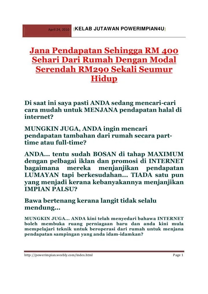 Tips, panduan dan artikel berkenaan dengan cara buat duit atau tambah pendapatan sampingan tanpa overhead yang tinggi, kita tak perlu risau sangat jika pendapatan bisnes untuk sesuatu bulan anda boleh mengetahui teknik menjana wang dengan sms tak kira anda berniaga dalam apa bidang.